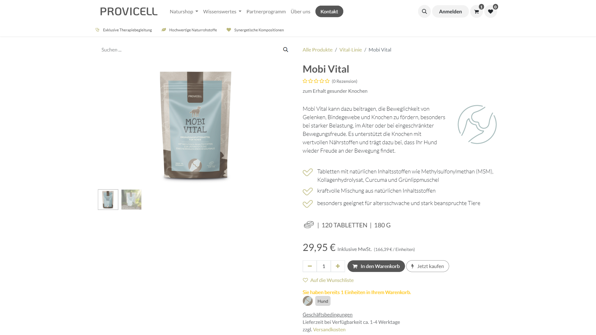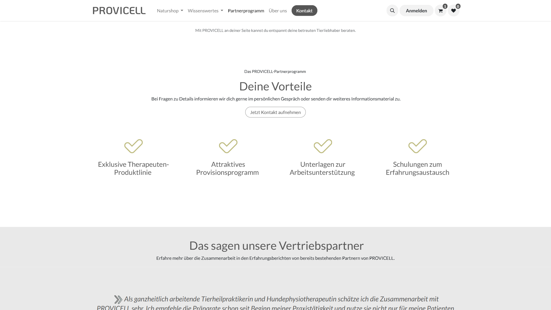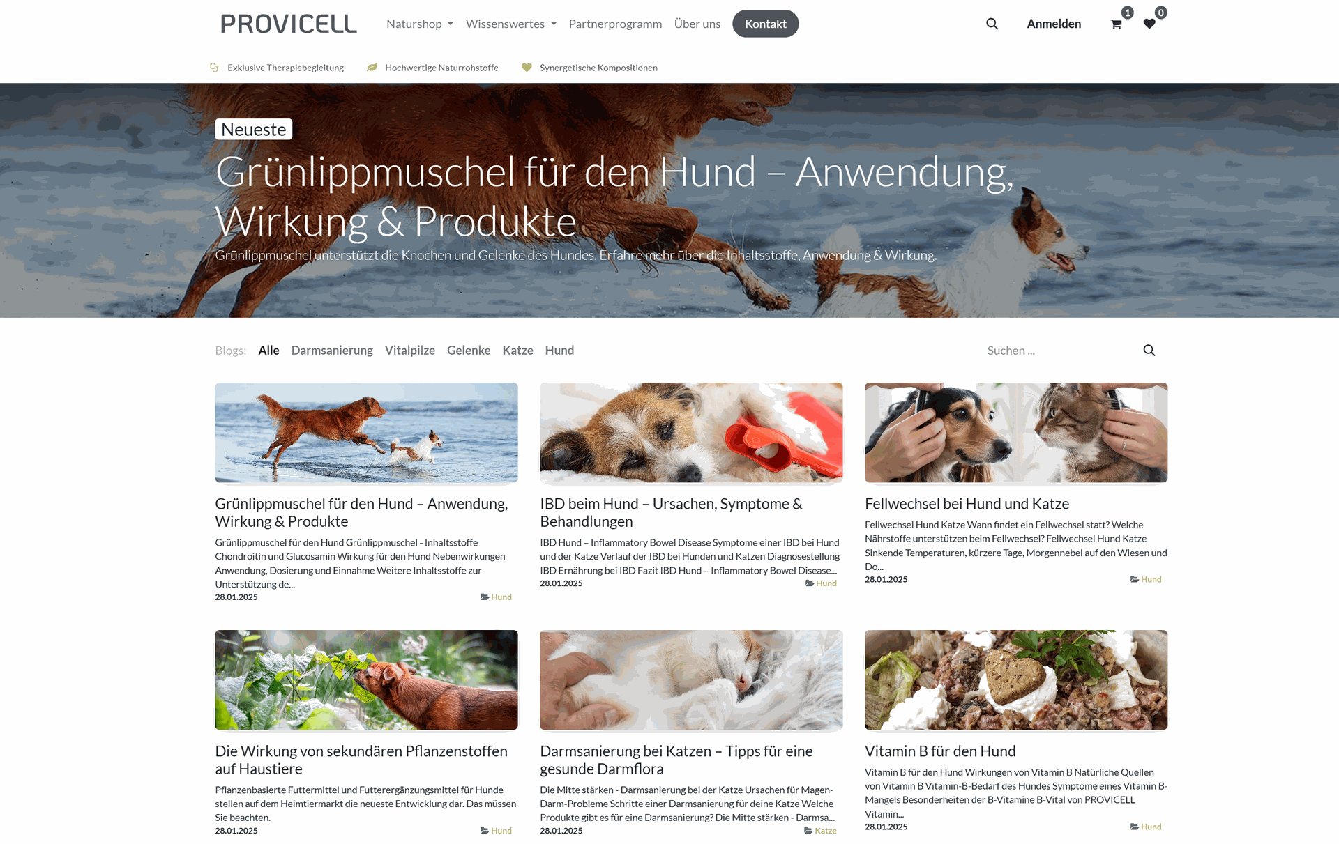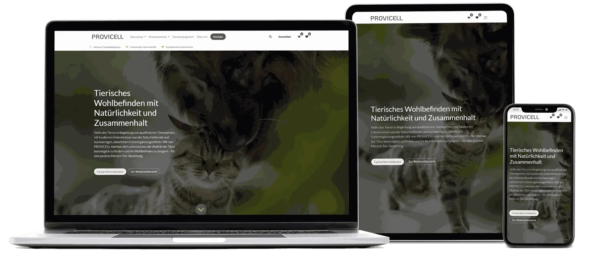 Für die Provicell GmbH, Hersteller hochwertiger, natürlicher Futterergänzungsmittel für Tiere, durften wir beim modernisieren des gesamten digitalen Auftrittes unterstützen. Durch die intelligente Nutzung der Odoo-Webeditor-Funktionen wurde die Seite größtenteils im Standard realisiert – individuelle Entwicklungen kamen nur dort zum Einsatz, wo es spezielle Anforderungen gab. Das Ergebnis: ein zeitgemäßer Webauftritt, der die vielfältigen Angebote von Provicell – von Produkten, Blogartikeln und Seminaren bis hin zum Partnerprogramm – optimal präsentiert.