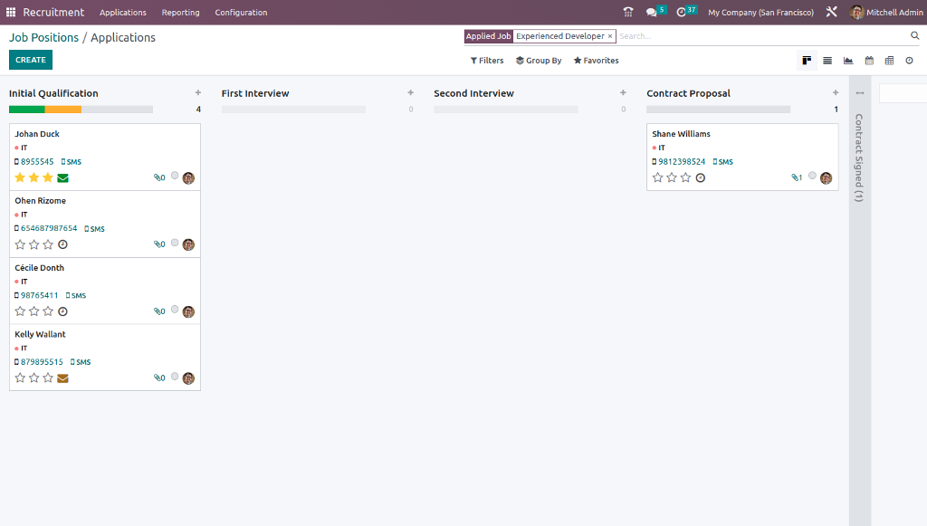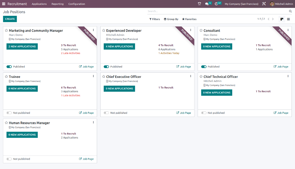 Diese Funktionen bietet Odoos App "Personalbeschaffung"