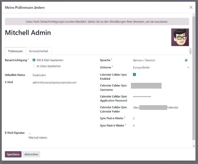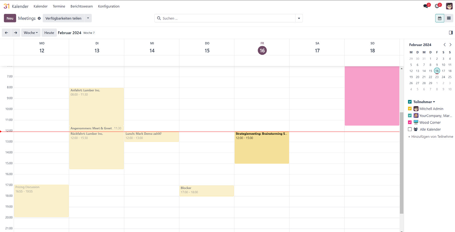 Durch die Synchronisation haben Sie mit Ihrem Odoo-Kalender alle Termine in einem Ort, und Odoo kann bei Ressourcenbuchungen, Terminbuchungen usw. auch bestehende Termine in externen Kalendern beachten.