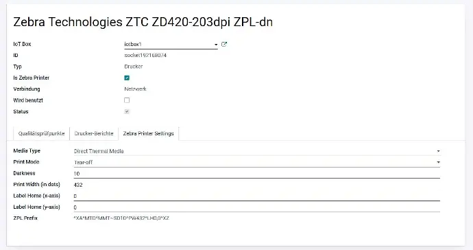 D9T Odoo App: IoT: Zebra Labelprinter Support
